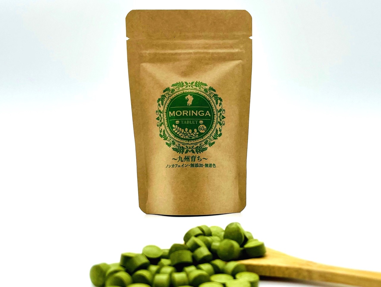 モリンガのパウダーを100%使い、つなぎ無しでタブレットにしました。